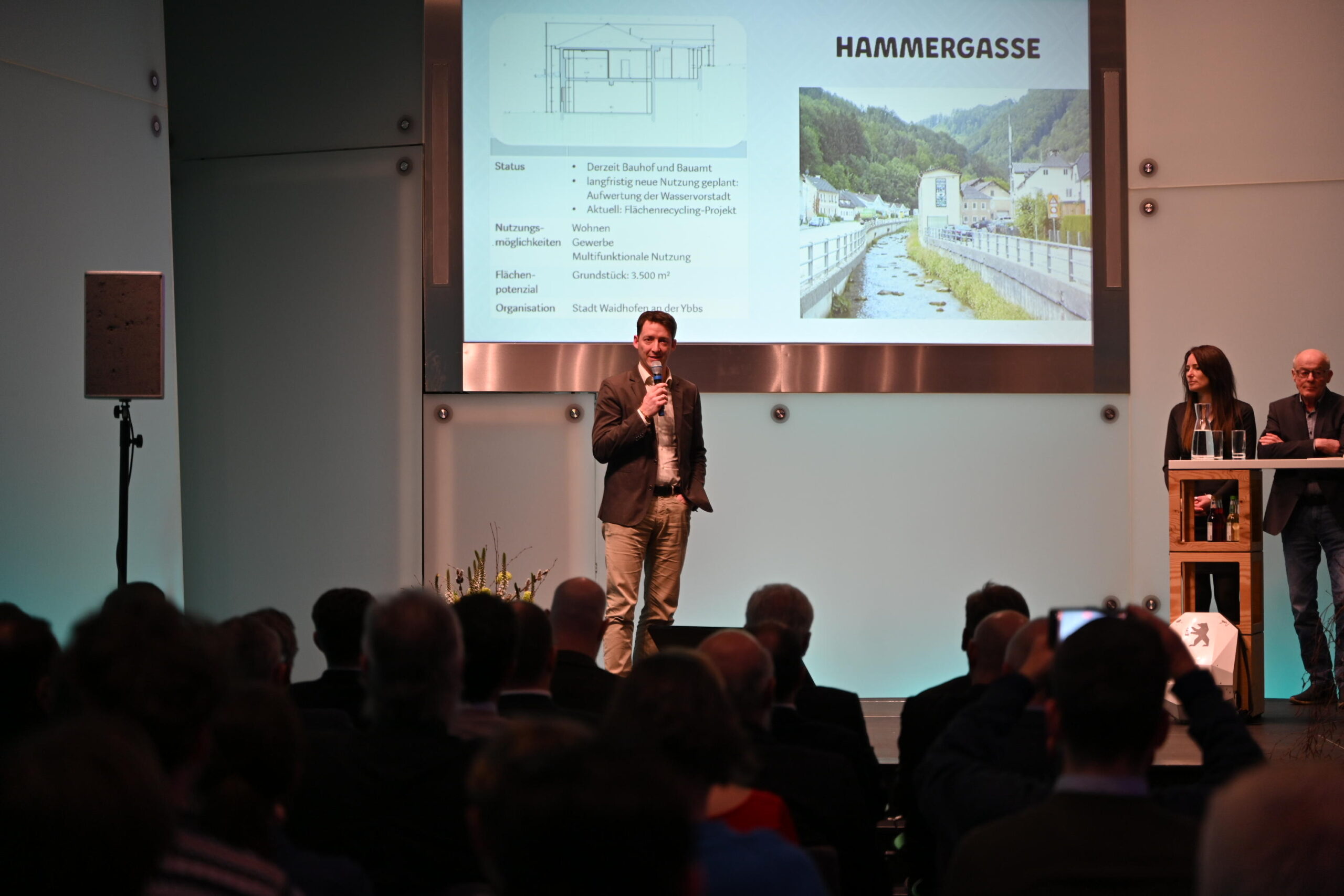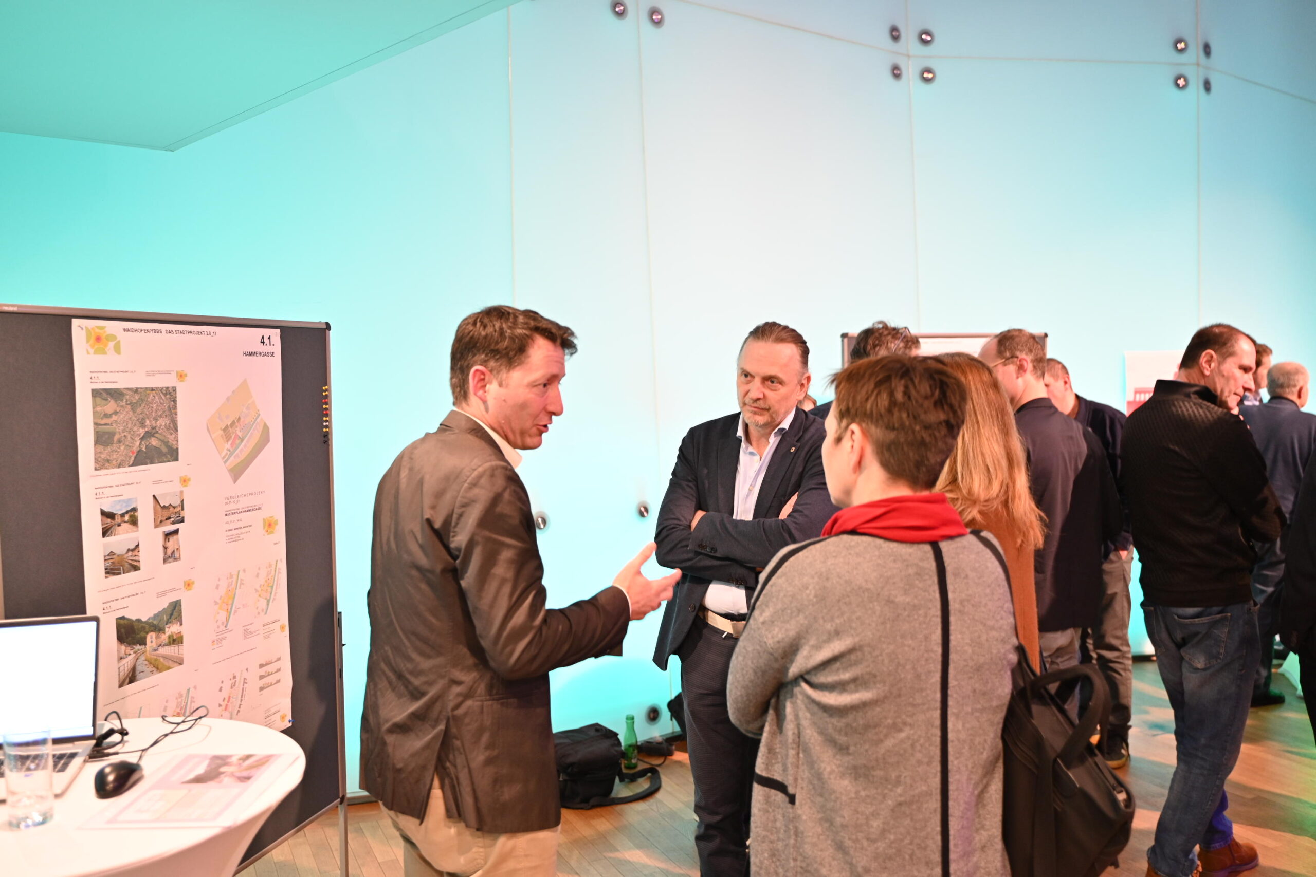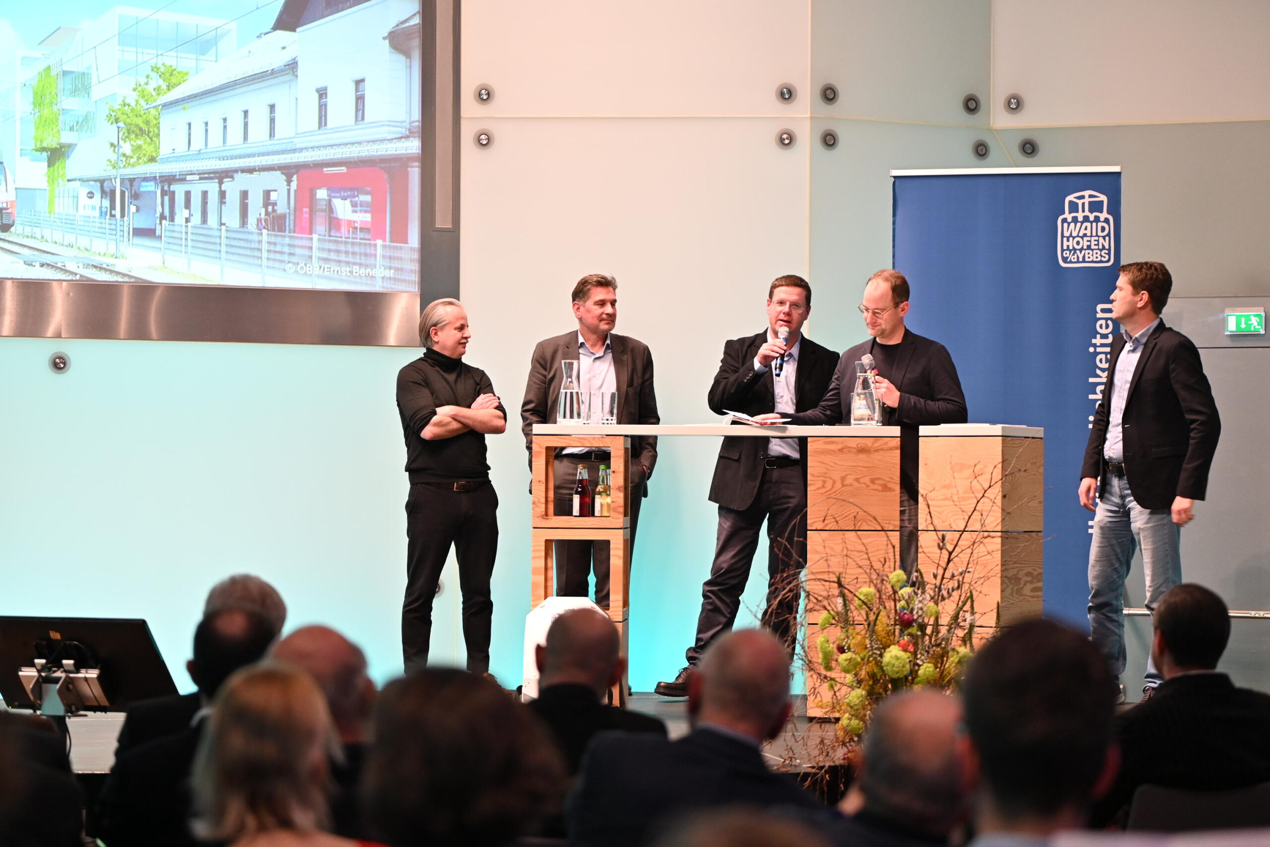 Der erhabene Kristallsaal in Schloss Rothschild – Sinnbild für die erfolgreiche Transformation von Räumen – war die passende Kulisse für viele inspirierende Gespräche – darunter mit Bürgermeister Werner Krammer, Bauamtsdirektor Martin Helm, Benedikt Winkelmayer und Martin Scheiflinger der ÖBB Immo, Wolfgang Komatz vom beta campus, Doris Sommer von Schloss Rothschild und Moderator & Organisator Stefan Hackl (Leiter der Stabstelle Stadt- und Standortentwicklung in Waidhofen a.d. Ybbs) sowie viele Interessierte mehr.